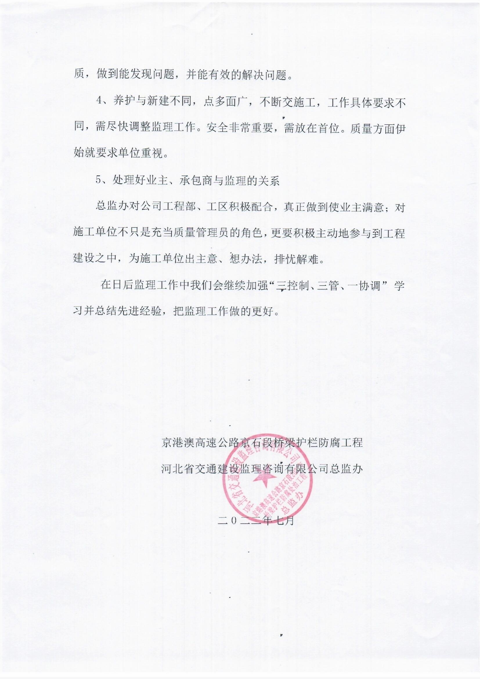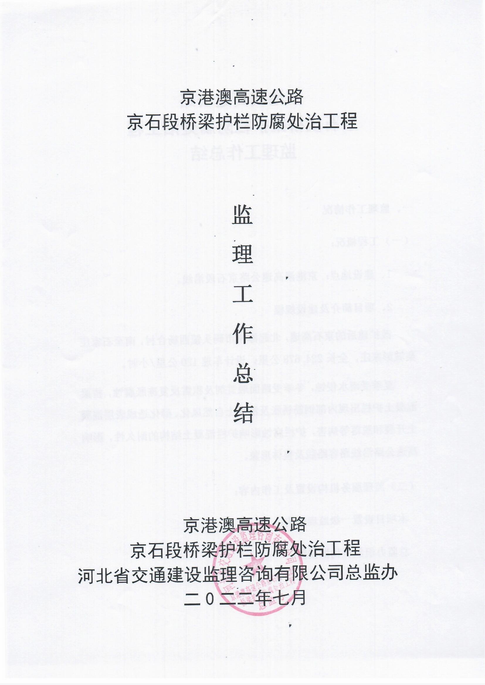 京港澳高速公路京石段2022年橋梁護(hù)欄防腐處治工程監(jiān)理報(bào)告