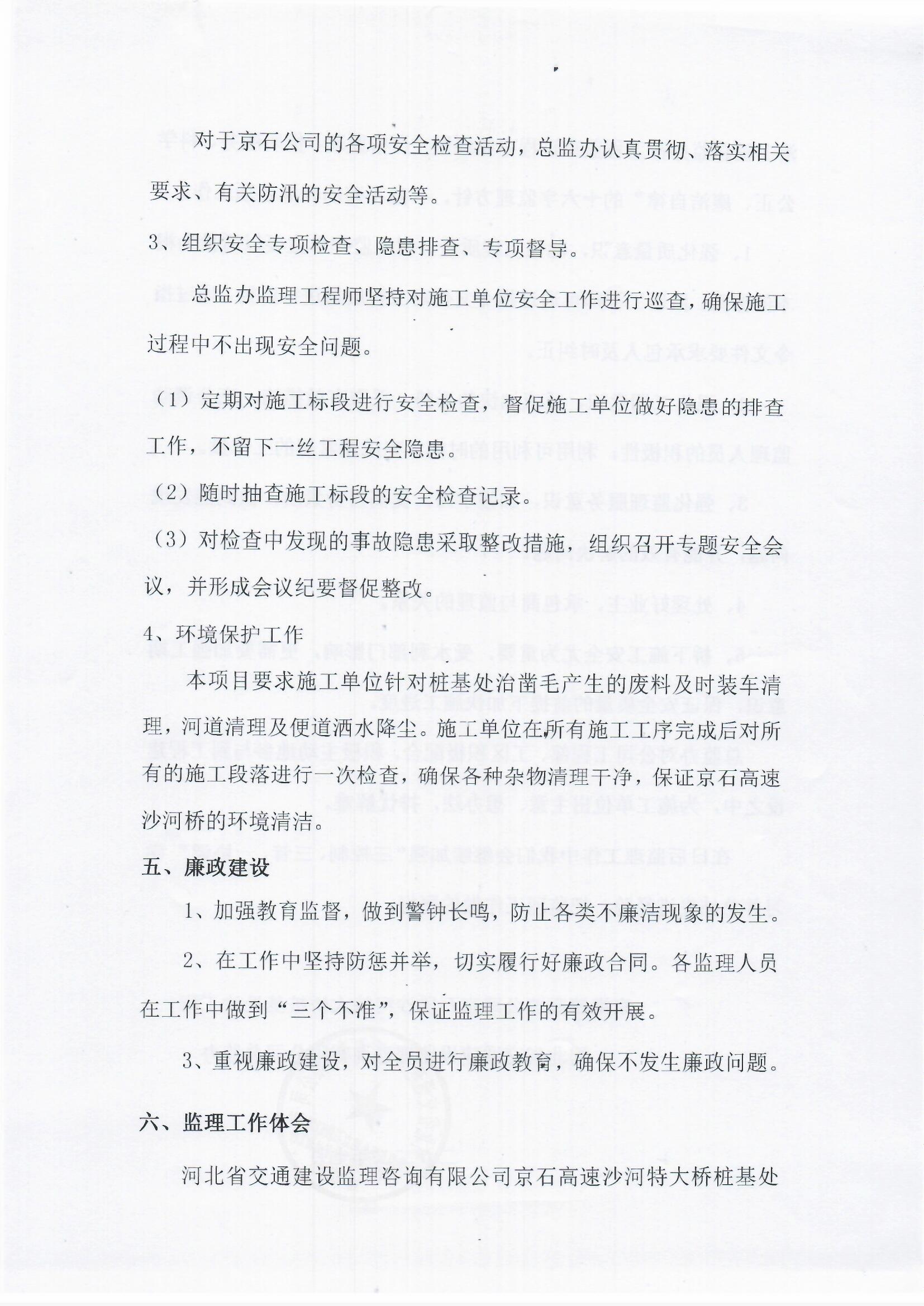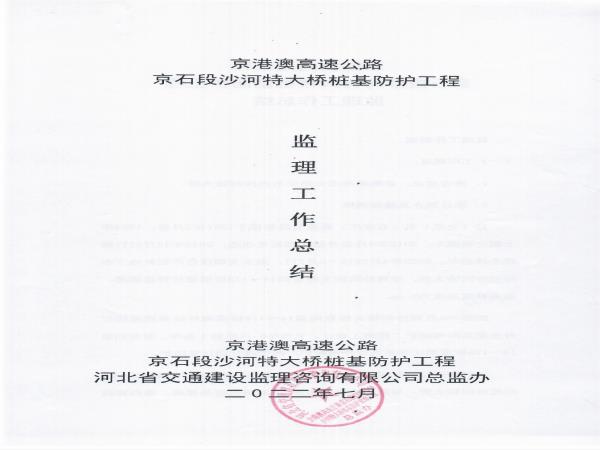京港澳高速公路京石段沙河特大橋樁基防護(hù)處治工程監(jiān)理報(bào)告