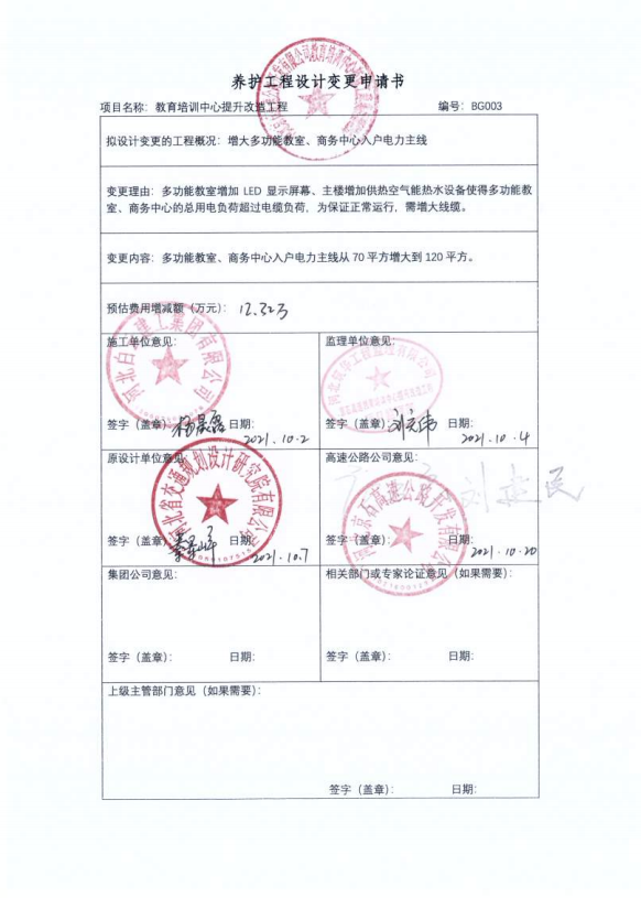 河北京石高速公路開發(fā)有限公司教育培訓(xùn)中心提升改造工程一期設(shè)計(jì)變更