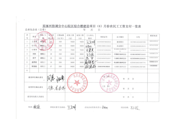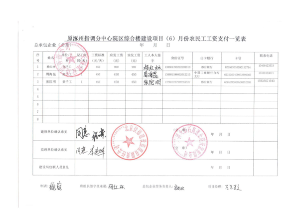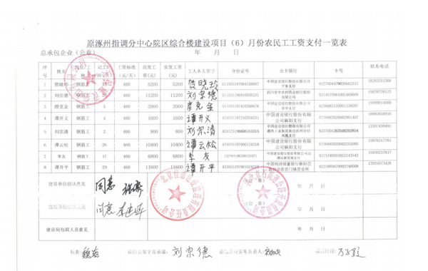 原涿州指調(diào)分中心綜合樓建設(shè)項(xiàng)目6月份農(nóng)民工工資發(fā)放公示