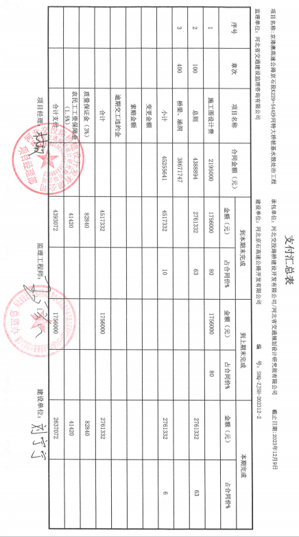 京港澳高速公路京石段K229+544沙河特大橋樁基水毀處治工程二期支付證書