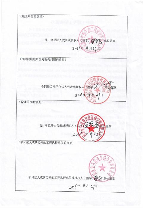 京港澳高速公路京石段橋涵病害維修處治工程驗收證書