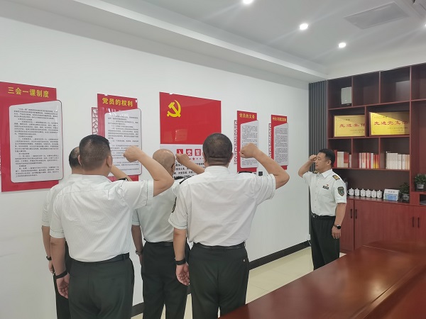 “我志愿加入中國共產(chǎn)黨,擁護黨的綱領……”在鮮紅的黨旗下,徐水站黨支部為支部黨員舉辦“迎七一”政治生日儀式。全體黨員重溫入黨誓詞,支部書記向過政治生日的黨員發(fā)放“政治生日學習教育書籍”。