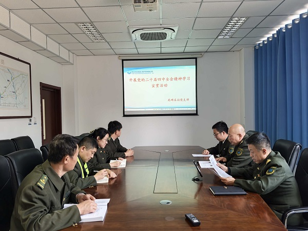 為深入學(xué)習(xí)、宣傳并貫徹黨的二十屆四中全會(huì)精神,切實(shí)將學(xué)習(xí)與實(shí)際工作相融合,為全體黨員注入強(qiáng)大精神動(dòng)力,11月3日,高碑店站黨支部扎實(shí)開(kāi)展“二十屆四中全會(huì)精神”學(xué)習(xí)宣貫活動(dòng)。此次活動(dòng)由黨支部書(shū)記孫克瞳主持,全體黨員參加。