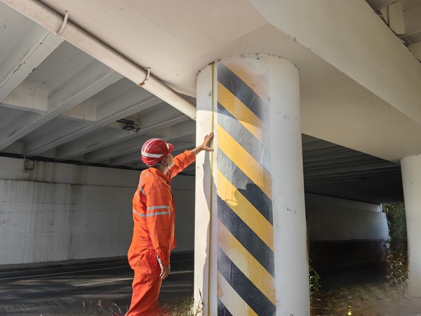 按照現(xiàn)行的交安設(shè)施的規(guī)范標準,橋梁工程師對橋梁的防拋網(wǎng)、豎向防墜網(wǎng)、上跨橋的立面標記及墩柱防護等部位進行了全面排查,逐一統(tǒng)計被交道倒斜、缺失的標志標牌,磨損嚴重、模糊不清的標牌標識,銹蝕缺損的防護網(wǎng),確保排查全面到位。