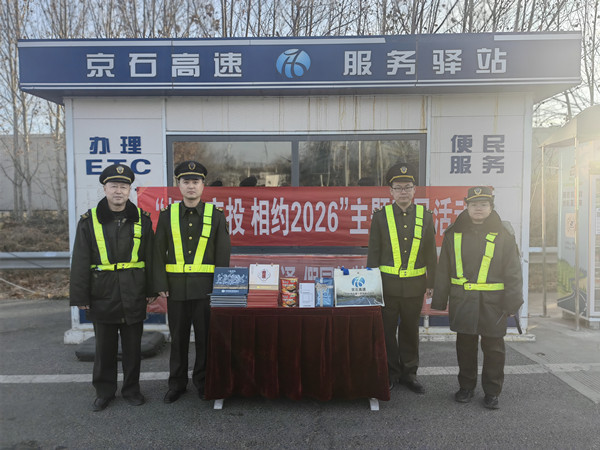 工作人員在收費站口設置便民服務臺,為司乘免費提供方便面、毛巾,還精心準備了2026年臺歷伴手禮,同時現(xiàn)場引導司乘注冊“冀交萬里行”“京石易行”會員,將新年祝福與溫暖傳遞給每一位過往司乘。