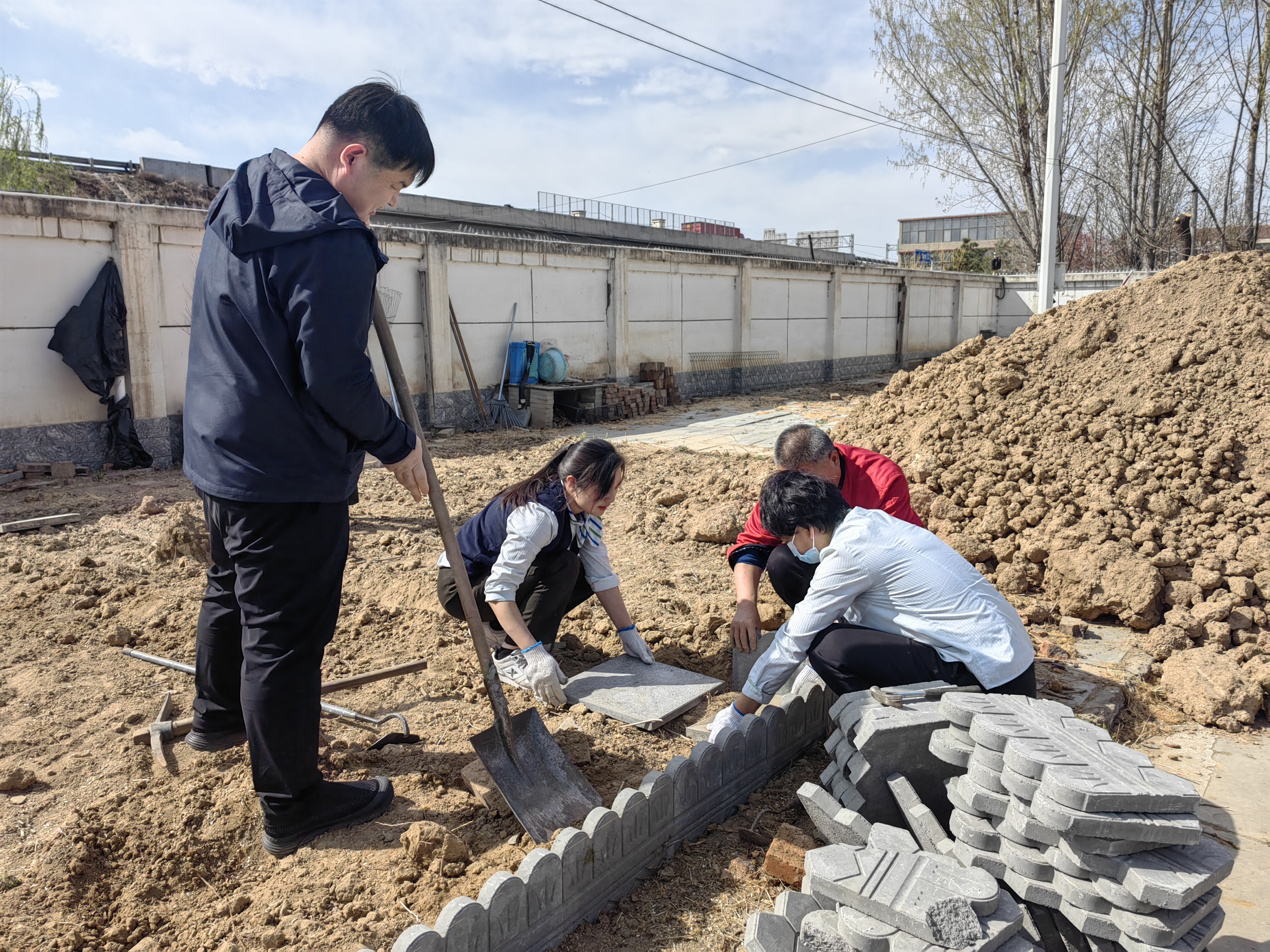 在鋪磚環(huán)節(jié),大家集思廣益,雖然不是專業(yè)的,但是在這個網(wǎng)絡(luò)發(fā)達的時代,大家對照手機里的教學視頻,將每塊磚錯縫排列,既能防止雜草滋生,又形成自然的導水槽。站長劉淑芳帶著“徒弟們”用棉線拉出筆直的基準線,食堂“資深”的蘇師傅手持橡膠錘反復敲打校正,磚縫誤差嚴格控制在3毫米內(nèi)。新入職的昕瑤邊鋪磚邊贊嘆:“這手藝太牛了?!币帽娙斯笮?。大家干得熱火朝天,汗水浸透了衣服,也不知疲倦,仿佛閃念間看到了不久后菜園里豐收的場景。