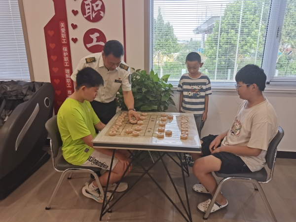 看護(hù)小組充分利用職工小家場(chǎng)地資源,精心規(guī)劃了多樣化的活動(dòng)內(nèi)容。在這里,既有安靜的學(xué)習(xí)角,志愿者們會(huì)耐心輔導(dǎo)孩子們完成暑假作業(yè),幫助他們攻克學(xué)習(xí)上的難題;也有充滿樂(lè)趣的互動(dòng)區(qū),孩子們可以跟著老師學(xué)下象棋,在楚河漢界的對(duì)弈中鍛煉思維、培養(yǎng)專注力;歌聲陣陣的才藝區(qū)更是熱鬧,孩子們跟著節(jié)奏學(xué)唱歌,在歡聲笑語(yǔ)中展現(xiàn)童真與活力。