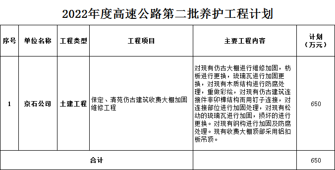 2022年第二批養(yǎng)護(hù)工程計(jì)劃