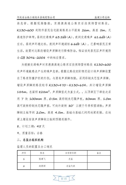 K130+600 處聲 屏障增設(shè)工程監(jiān)理報告