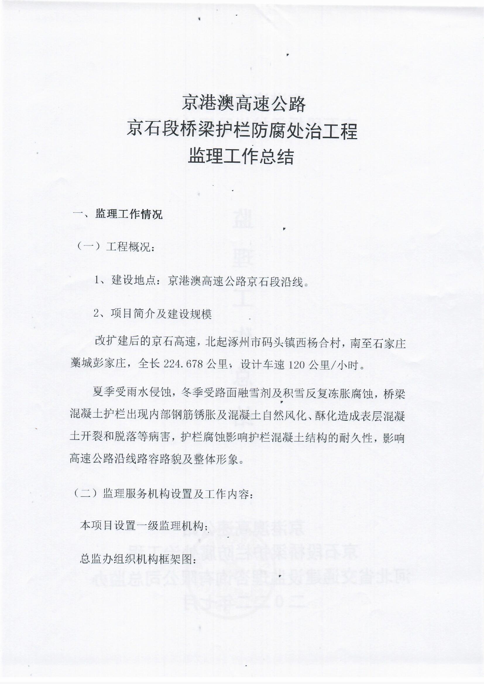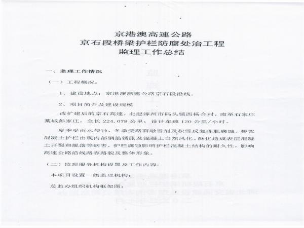 京港澳高速公路京石段2022年橋梁護(hù)欄防腐處治工程監(jiān)理報(bào)告