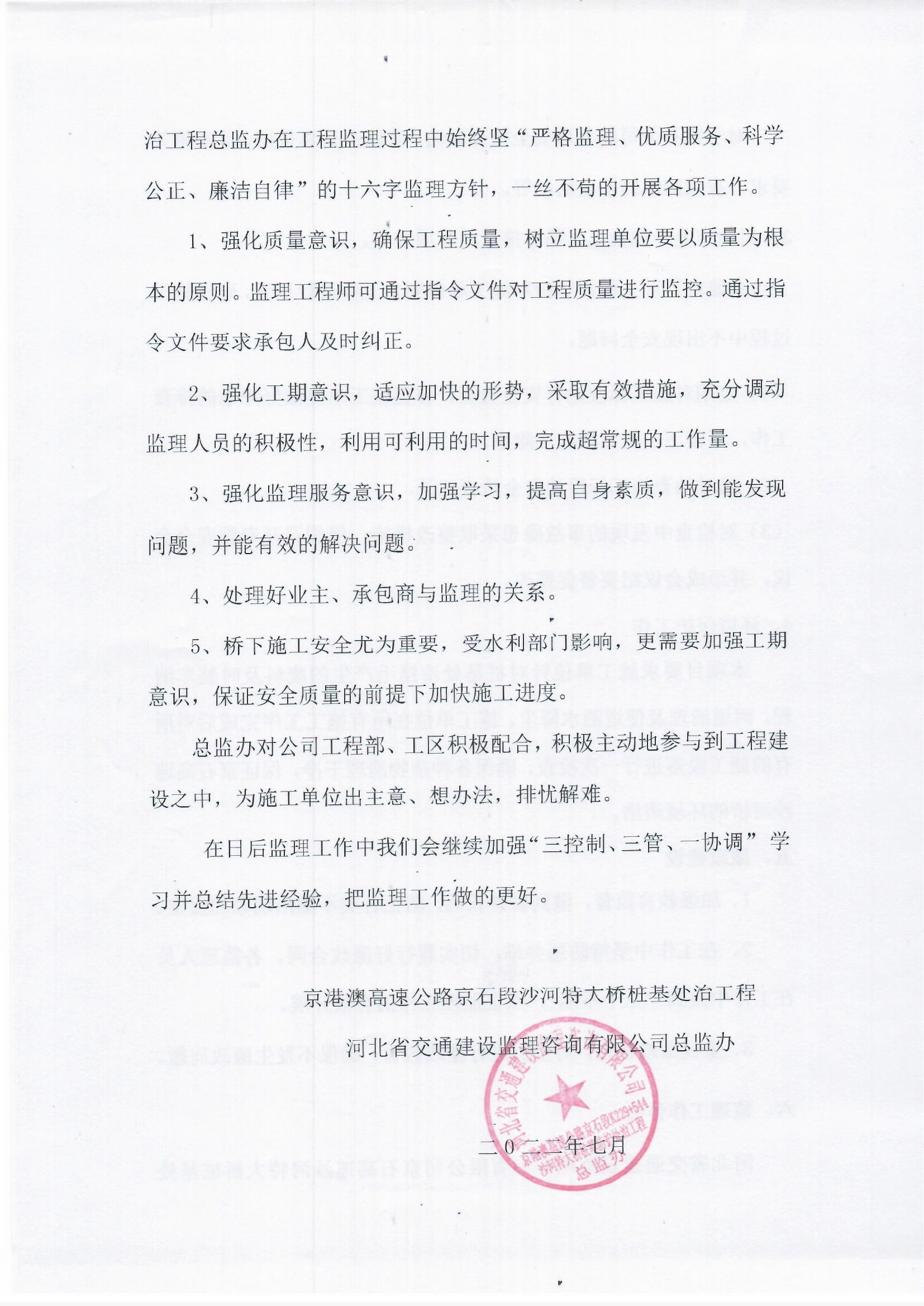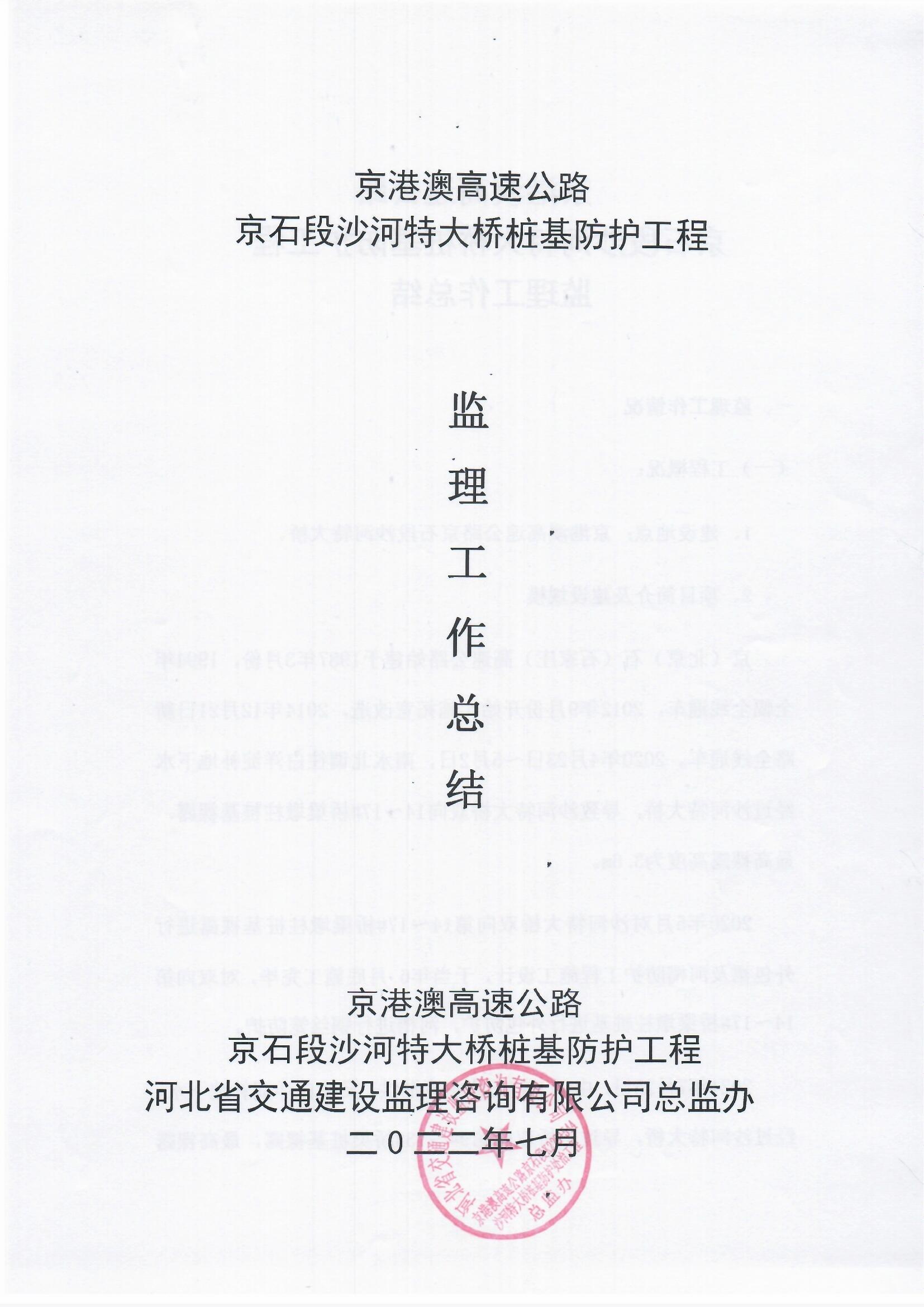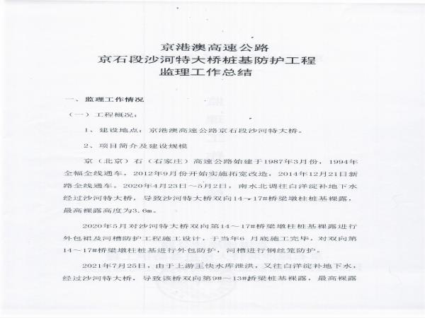 京港澳高速公路京石段沙河特大橋樁基防護(hù)處治工程監(jiān)理報(bào)告