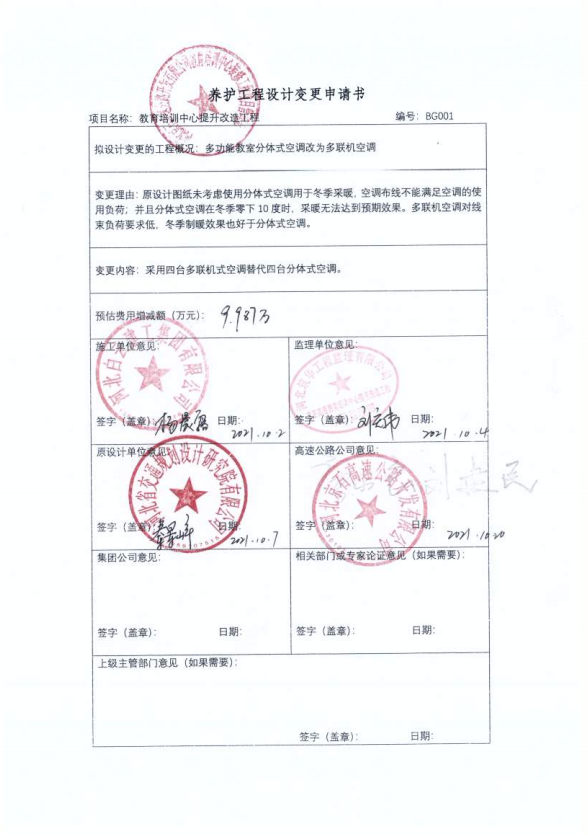 河北京石高速公路開發(fā)有限公司教育培訓(xùn)中心提升改造工程一期設(shè)計(jì)變更