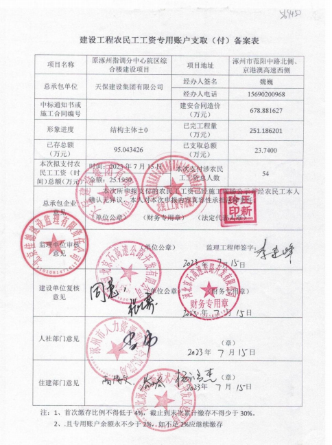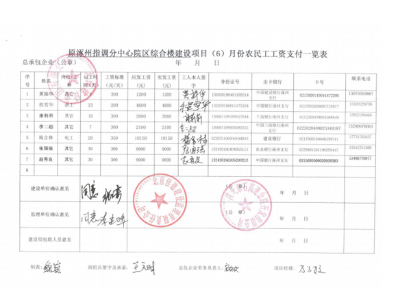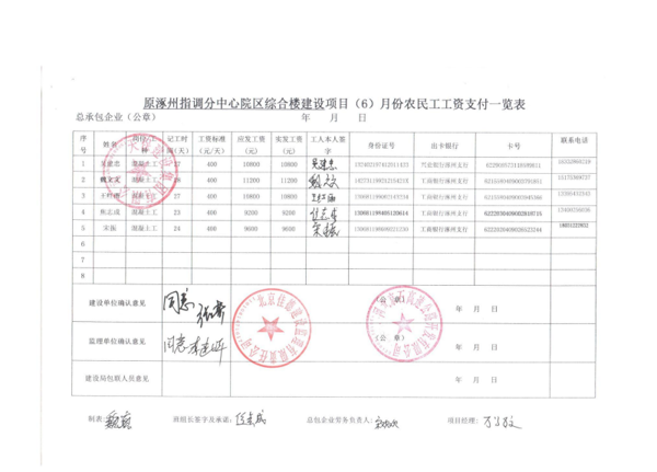 原涿州指調(diào)分中心綜合樓建設(shè)項(xiàng)目6月份農(nóng)民工工資發(fā)放公示