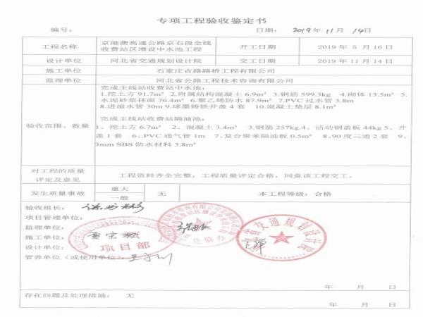 京港澳高速公路京石段全線收費(fèi)站區(qū)增設(shè)中水池工程專項(xiàng)鑒定書