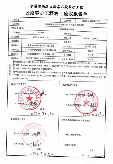 京港澳高速公路京石段2023年防眩網(wǎng)更換工程竣工驗(yàn)收