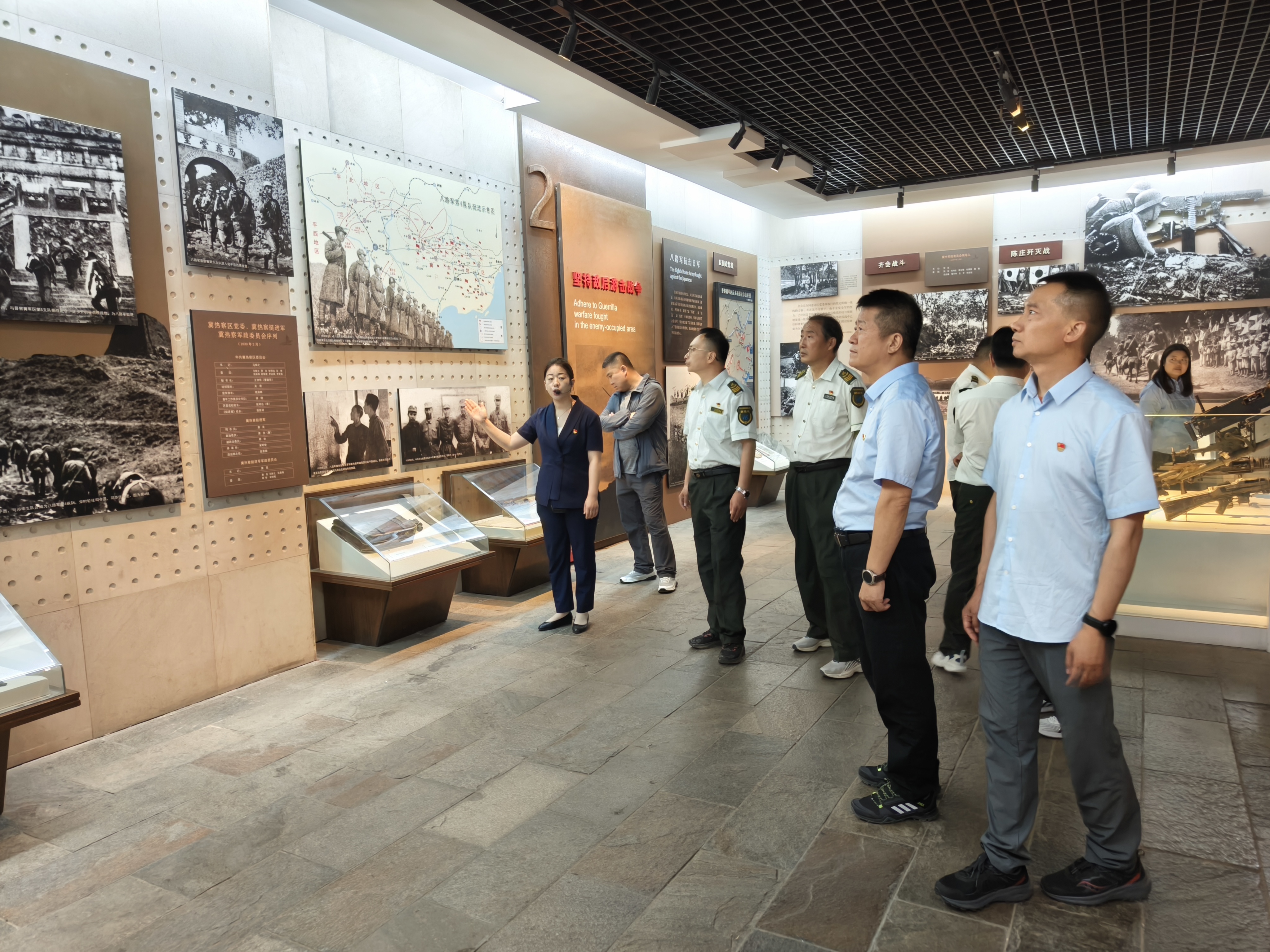 晉察冀邊區(qū)革命紀(jì)念館內(nèi),泛黃的文獻(xiàn)、斑駁的槍炮、復(fù)原的戰(zhàn)時(shí)場景,全景式再現(xiàn)了邊區(qū)軍民在中國共產(chǎn)黨領(lǐng)導(dǎo)下開展抗戰(zhàn)的壯闊歷程。全體人員跟隨講解員的講述,重溫抗日根據(jù)地的英勇事跡 —— 從 “地雷戰(zhàn)”“地道戰(zhàn)” 的智慧抗?fàn)帲?“狼牙山五壯士”“二小放牛郎” 的英雄壯舉,一樁樁史實(shí)鐫刻著中華民族不屈的氣節(jié)。