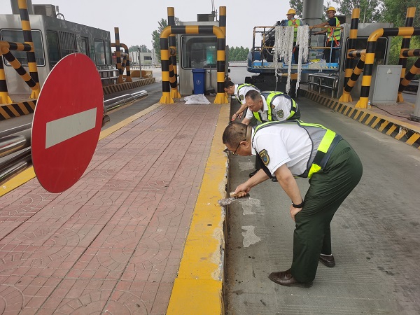 為將紀律要求轉化為實干行動,支部組織黨員開展 “路域環(huán)境整治先鋒行動”。在收費站廣場、車道,黨員們手持鏟子、抹子等工具,對收費車道、安全島等區(qū)域漆面進行深度清理,為司乘營造整潔暢通的通行環(huán)境。
