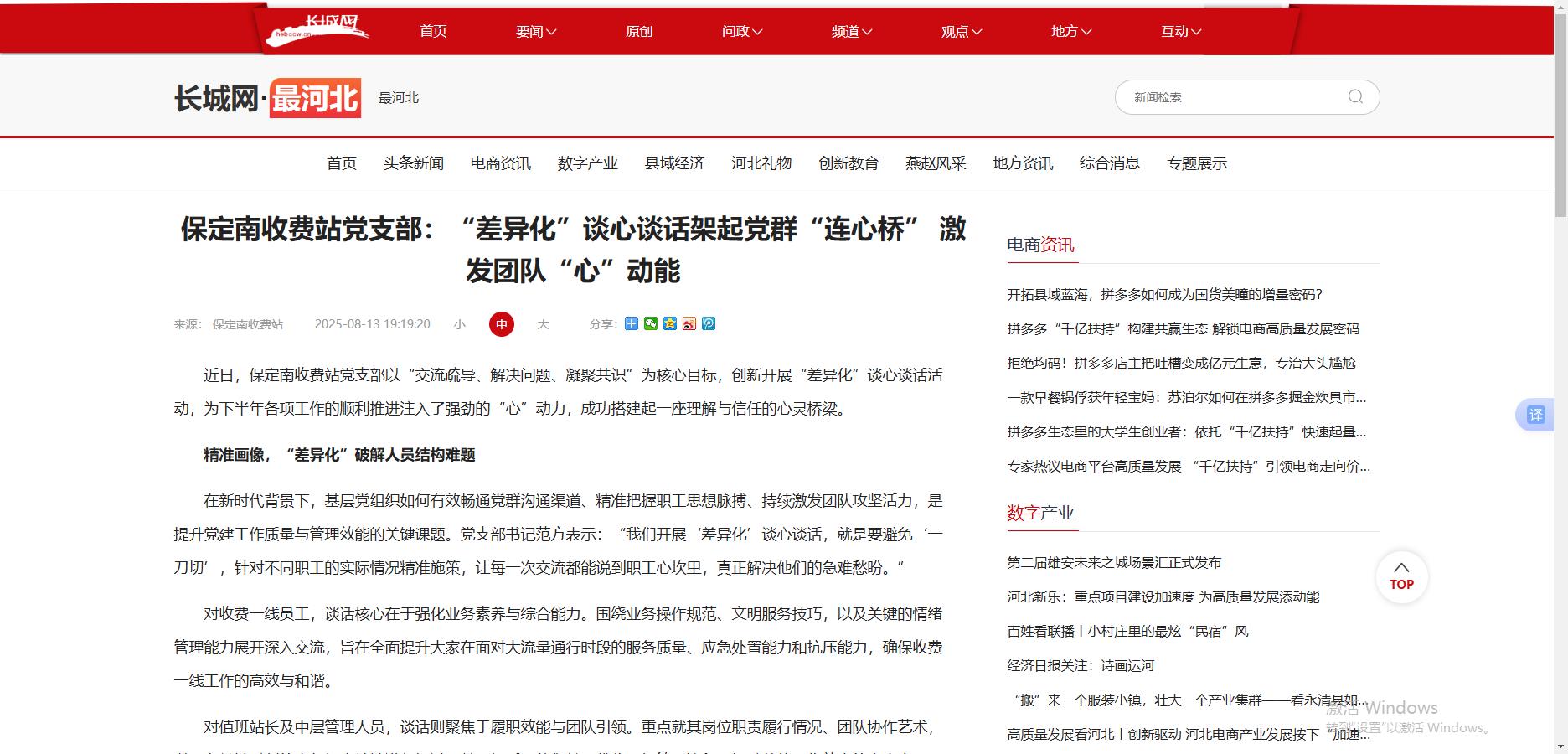 【長(zhǎng)城網(wǎng)最河北】保定南收費(fèi)站黨支部:“差異化”談心談話架起黨群“連心橋” 激發(fā)團(tuán)隊(duì)“心”動(dòng)能