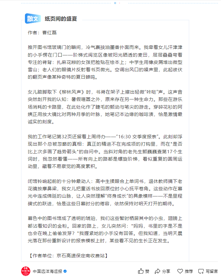 【中國(guó)遠(yuǎn)洋海運(yùn)報(bào)】紙頁(yè)間的盛夏