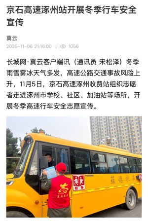 【長(zhǎng)城網(wǎng)冀云】京石高速涿州站開展冬季行車安全宣傳