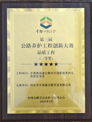 近日,在中國(guó)公路學(xué)會(huì)養(yǎng)護(hù)與管理分會(huì)第十四屆學(xué)術(shù)年會(huì)暨第三屆公路養(yǎng)護(hù)工程創(chuàng)新大賽表彰儀式上,河北交投集團(tuán)所屬京石高速公路公司的“智能養(yǎng)護(hù)應(yīng)用”項(xiàng)目憑借智能化技術(shù)創(chuàng)新成果,從全國(guó)優(yōu)秀案例中脫穎而出,榮獲品質(zhì)工程一等獎(jiǎng)。