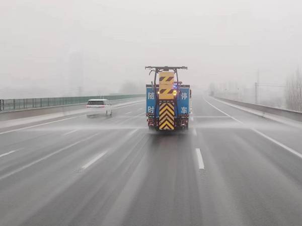 此次降雪環(huán)境溫度較高,除雪保暢重點(diǎn)由化雪變?yōu)榉乐怪攸c(diǎn)路段路面結(jié)冰。針對(duì)橋梁、大長縱坡等重點(diǎn)路段,各工區(qū)根據(jù)建立的臺(tái)賬,突出重點(diǎn),精準(zhǔn)施策,采用融雪劑和融雪液相結(jié)合的方式進(jìn)行撒布,防止路面結(jié)冰。