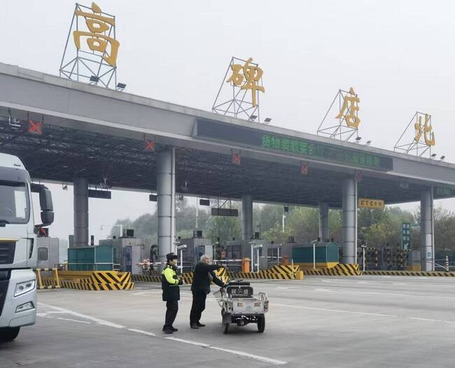 11月10日10時(shí)13分,高碑店收費(fèi)站外廣場(chǎng)的車流里,一抹蹣跚的身影格外醒目——一位老人茫然駐足,在往來(lái)車輛間顯得局促無(wú)措。當(dāng)班人員的目光,第一時(shí)間捕捉到了這份“異?!保瑤缀跏窍乱庾R(shí)地快步上前,在安全區(qū)域攔下了老人。
