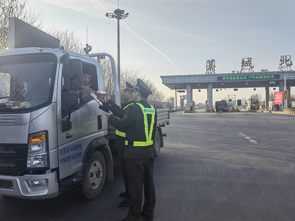 工作人員在收費站口設置便民服務臺,為司乘免費提供方便面、毛巾,還精心準備了2026年臺歷伴手禮,同時現(xiàn)場引導司乘注冊“冀交萬里行”“京石易行”會員,將新年祝福與溫暖傳遞給每一位過往司乘。