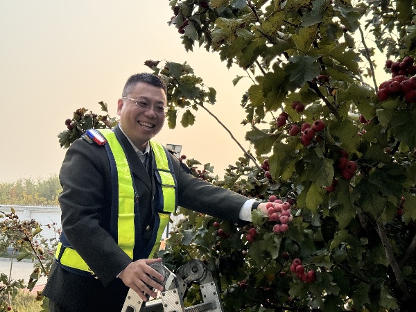 收費員們下班后,當他們的目光觸及那滿樹紅透了的山楂時,疲憊的眼神瞬間被點亮。平日里,他們堅守在收費崗位上,迎接每一位過往的車輛,而此刻,這滿樹的山楂成了他們歡樂的源泉,歡聲笑語在后院回蕩,有人身手敏捷地爬梯子,小心翼翼地摘下山楂;有人在樹下穿梭,尋找著那些最紅最大的果實;輕輕一擦,放入口中,酸澀與甜蜜交織的味道在味蕾上散開,被酸得瞇起了眼睛,卻還是忍不住露出笑容。