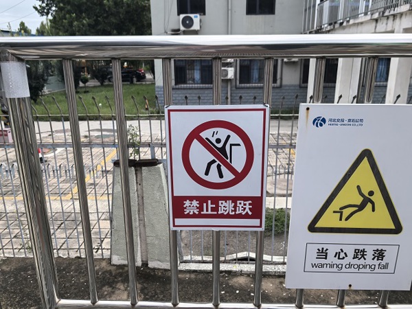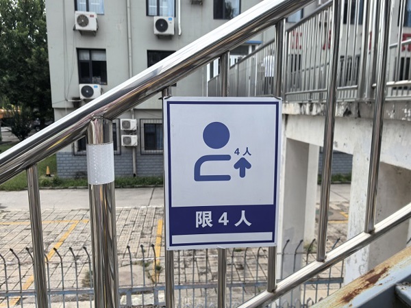 現(xiàn)場可見“限4人”標識明確了樓梯同時承載的人員數(shù)量上限,防止因人員過度聚集引發(fā)樓梯荷載超標問題;“禁止跳躍”標識以醒目的圖案和文字,警示通行人員切勿在樓梯上做出跳躍等危險動作;“當心跌落”標識則時刻提醒大家注意腳下,防范跌落風險。